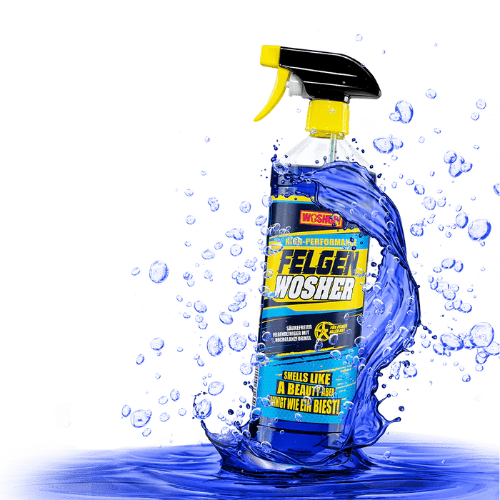 Kein beastiger Gestank, keine Abstriche in der Duftnote, einfach nur straighte Reinheit und pompöser Glanz. Man duscht sich selbst ja auch nicht nur obenrum. Wer seine vierrädrigen Schätze wirklich liebt, poliert ihnen auch mal hart die Felgen. Klingt schmutzig, ist es aber nicht. Mit unserem FELGEN WOSHER ist die Wäsche für Untenrum spielend leicht. Einfach aufsprühen, einmal schön nass machen, schrubben und abwischen. Danach bleibt nichts als ein fresher Duft in der Nase und ein freier Blick auf glänzende Felgen.